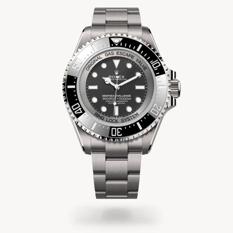 Alliage de titane grade 5 sélectionné par Rolex, le titane RLX se distingue par sa légèreté et ses qualités de résistance aux déformations et à la corrosion. Insensible à la pression abyssale, la montre expérimentale descendue avec James Cameron dans la fosse des Mariannes, réalisée en acier 904L, posait un problème de portabilité en raison de son poids. Le recours au titane RLX pour la fabrication du boîtier et du bracelet de la Deepsea Challenge a permis d’alléger la montre. Elle pèse ainsi 30 % de moins que la montre expérimentale de James Cameron. Elle arbore aussi un satinage particulièrement marqué sur le bracelet et l’ensemble du boîtier – à l’exception de l’épaulement de protection de la couronne. Afin de souligner le galbe des cornes, les arêtes supérieures ont été chanfreinées puis polies.