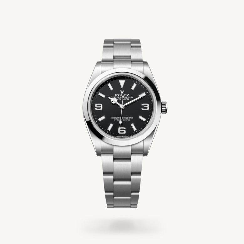 Le cadran confère aux montres Rolex leur apparence caractéristique : il est le premier garant de leur identité et de leur lisibilité. Les chiffres 3, 6 et 9 emblématiques de l’Explorer sont remplis d’une matière luminescente longue durée émettant une lueur bleue, comme les index et les aiguilles. À l'instar de tous les garde‑temps Rolex, le cadran de l'Explorer 36 est mis au point et fabriqué en interne, en grande partie à la main pour un résultat parfait.
