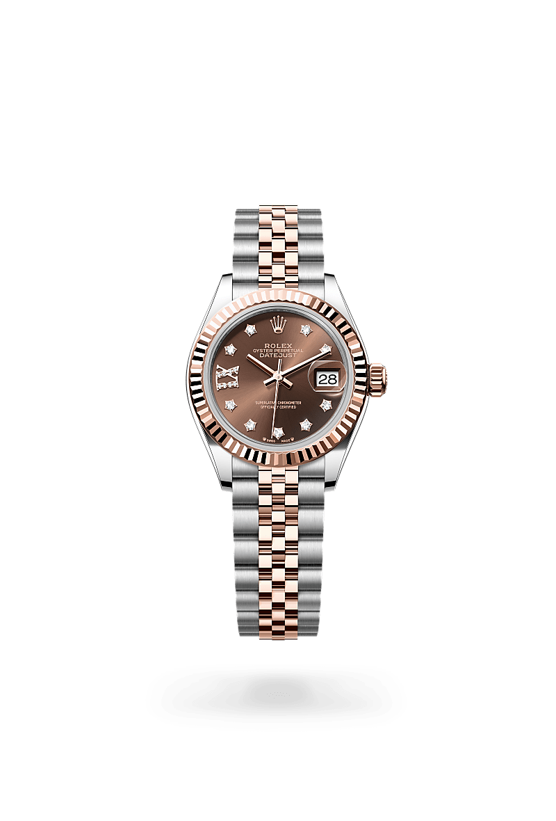 La Lady Datejust est disponible en acier Oystersteel, en or jaune, gris ou Everose 18 ct, ou en version Rolesor – combinaison d'acier Oystersteel et d'un des trois types d’or (gris, jaune ou Everose).