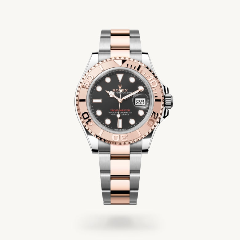La lunette tournante bidirectionnelle graduée 60 minutes de la Yacht‑Master est réalisée entièrement en métal précieux ou munie d’un disque Cerachrom en céramique de haute technologie. Les chiffres et les graduations, polis et en relief, se détachent sur un fond mat à la finition sablée. Cette lunette fonctionnelle, qui permet au porteur de la montre de calculer, par exemple, le temps de parcours entre deux bouées, constitue un autre composant clé de l’identité visuelle caractéristique du modèle.