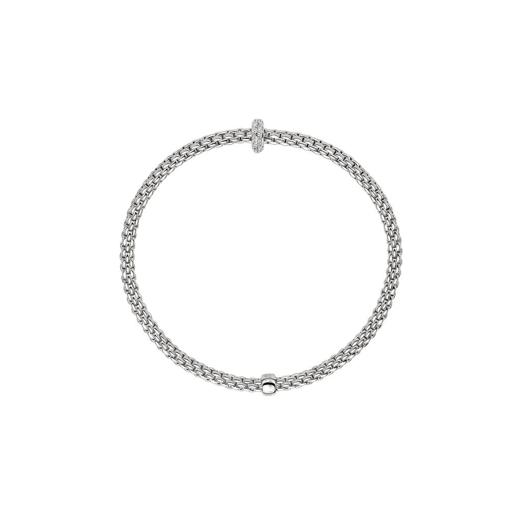 FOPE Prima Flex’it bracelet in 18k gold, stretch model with a disc set with VS G diamonds totaling 0.18 ct, size M.