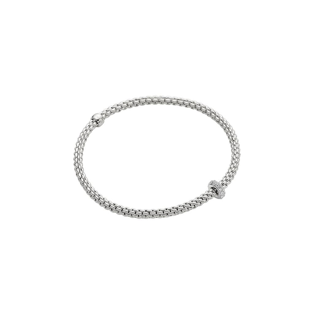 Flex'it is a patented FOPE technology that makes certain bracelets, necklaces, and rings flexible and stretchy. Tiny gold springs are integrated into each link, allowing the jewellery to be easily slipped on without a clasp, while maintaining remarkable strength.
