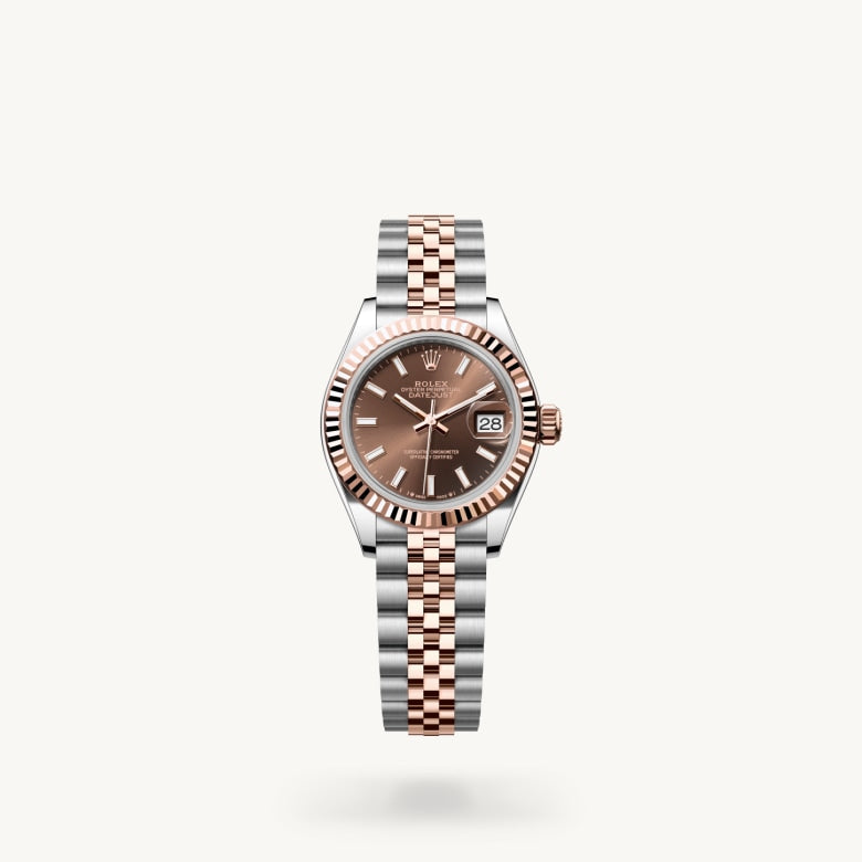 The Rolex fluted bezel is a mark of distinction. Originally, the fluting of the Oyster bezel had a functional purpose: it served to screw the bezel onto the case helping to ensure the waterproofness of the watch. It was therefore identical to the fluting on the case back, which was also screwed onto the case for waterproofness, using specific Rolex tools. Over time, the fluting became an aesthetic element, a genuine Rolex signature feature. Today the fluted bezel is a mark of distinction, in gold on this Lady-Datejust.