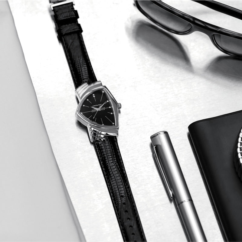 A watch as daring as its wearers, the Hamilton Ventura has been an essential part of the Men in Black uniform since 1997. Recognizable by its bold, triangular case, the Ventura embodies the futuristic style of the world’s most famous alien-fighting agents, appearing in every Men in Black film, including the latest installment with Tessa Thompson’s Agent M (2019).