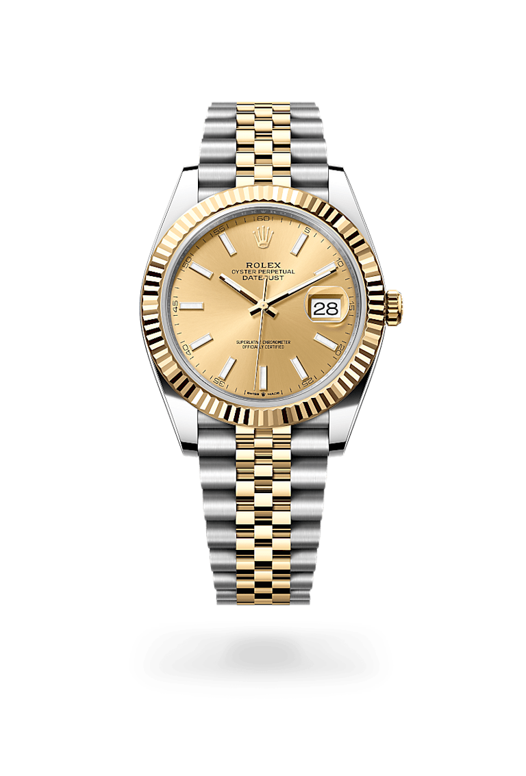 The Rolex fluted bezel is a mark of distinction. Originally, the fluting of the Oyster bezel had a functional purpose: it served to screw the bezel onto the case helping to ensure the waterproofness of the watch. It was therefore identical to the fluting on the case back, which was also screwed onto the case for waterproofness, using specific Rolex tools. Over time, the fluting became an aesthetic element, a genuine Rolex signature feature. Today the fluted bezel is a mark of distinction, in gold on this Datejust 41.