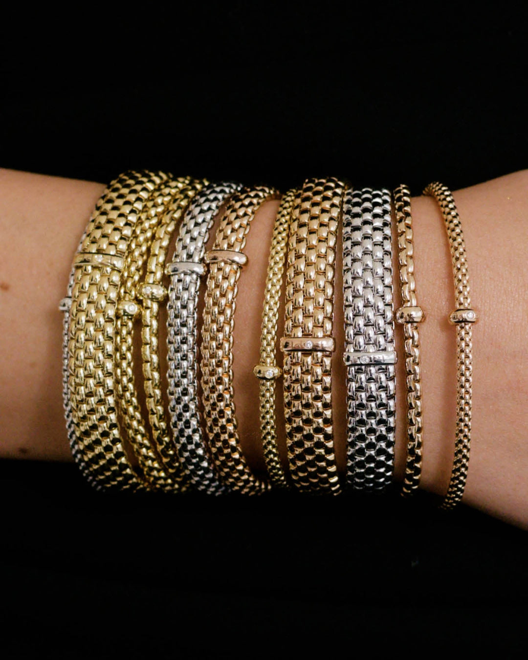 Chaque bijou FOPE est fabriqué en Italie par des artisans experts, utilisant un savoir-faire traditionnel combiné à des techniques de pointe. La technologie brevetée Flex’it, avec ses mailles en or flexibles, révolutionne le confort et l’adaptabilité des bracelets et bagues. Grâce à une sélection rigoureuse des matériaux et un design sophistiqué, FOPE crée des pièces qui allient innovation, luxe et durabilité.